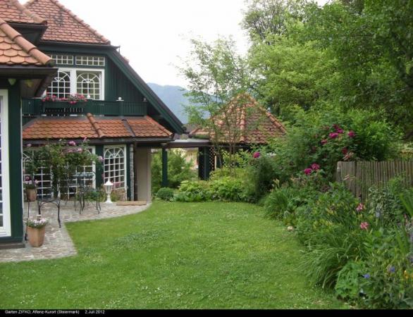 Die Eigentümer lieben Kunst; er ist ein bekannter Maler. Das Grundstück wurde mehrmals durch Zukauf vergrößert. Es hat einen völlig unregelmäßigen Grundriss und ist sehr bewegt in der Topografie.